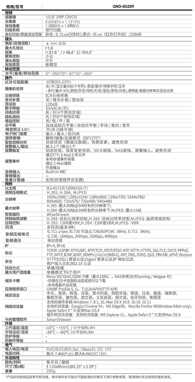 最低照度0.1 Lux(彩色),0Lux 黑白