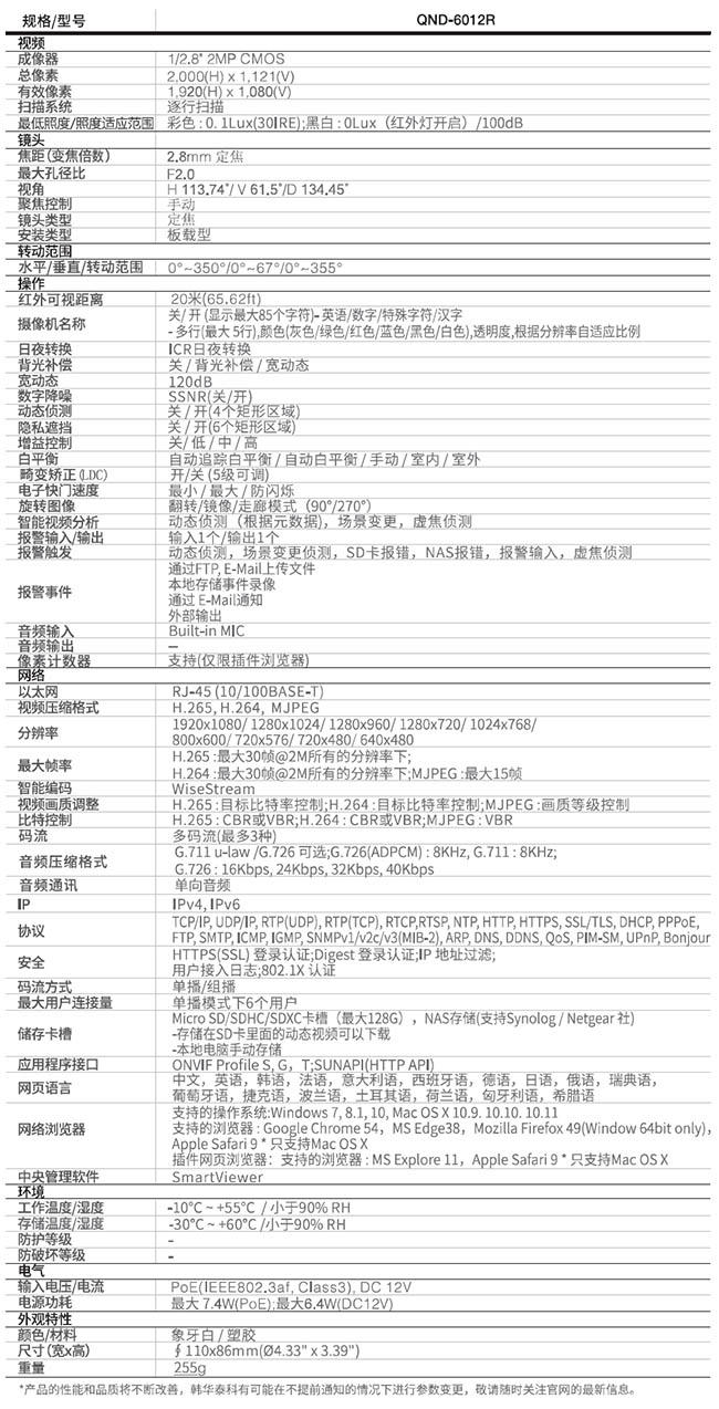 最大分辨率: 2M(1,920x1,080)